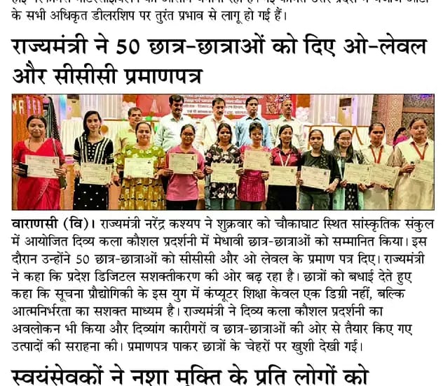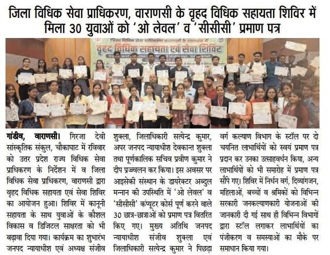 विधिक सहायता शिविर में गूंजा डिजिटल साक्षरता का डंका, पिछड़ा वर्ग कल्याण विभाग के 50 युवाओं को मिले 'O Level' व 'CCC' प्रमाण पत्र
